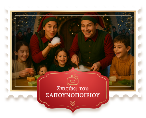 Σπιτάκι του Σαπουνoποιείου Μυρωδιές, αφρός και χαμόγελα πλημμυρίζουν τον αέρα! Τα ξωτικά αποκαλύπτουν στα παιδιά τα μυστικά της καθαριότητας με τον πιο δημιουργικό τρόπο. Μαθαίνουν να φτιάχνουν τα δικά τους…