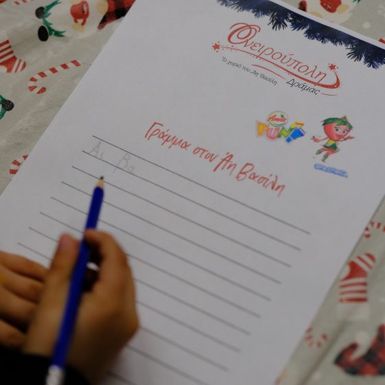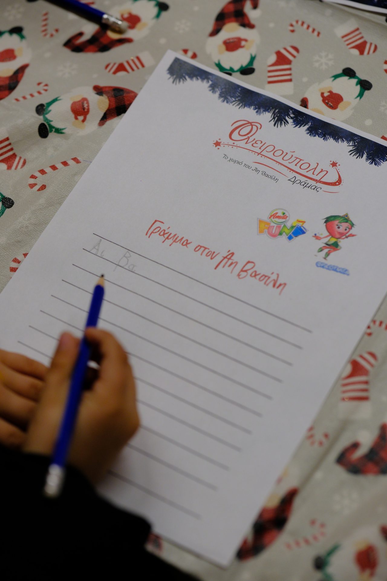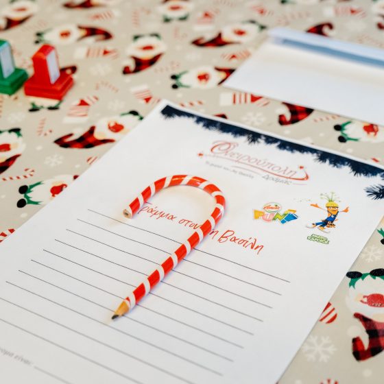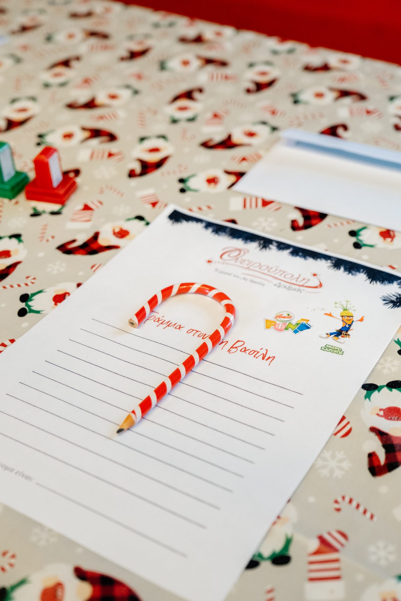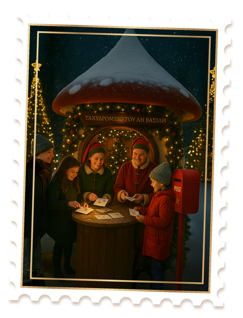 Τα ξωτικά-ταχυδρόμοι σε περιμένουν με μελάνια, φτερά και μαγικά γραμματόσημα για να γράψεις το δικό σου γράμμα στον Άη Βασίλη! Μικροί και μεγάλοι γίνονται για λίγο συγγραφείς των ονείρων τους, γεμίζοντας τις σελίδες με ευχές, ζωγραφιές και χρώματα. Διάλεξε το πιο λαμπερό χαρτί, γράψε με την καρδιά σου και σφράγισε το γράμμα με ένα φιλί γεμάτο αγάπη πριν το ρίξεις στο μαγικό γραμματοκιβώτιο. Κάθε γράμμα είναι μια μικρή ιστορία που ταξιδεύει κατευθείαν στο Βόρειο Πόλο, εκεί όπου τα ξωτικά του Άη Βασίλη το διαβάζουν και το μετατρέπουν σε χαρά και χαμόγελο! Εδώ, οι ευχές αποκτούν φτερά, η φαντασία ζωντανεύει και το πιο όμορφο μήνυμα των Χριστουγέννων ταξιδεύει ως τον ουρανό!