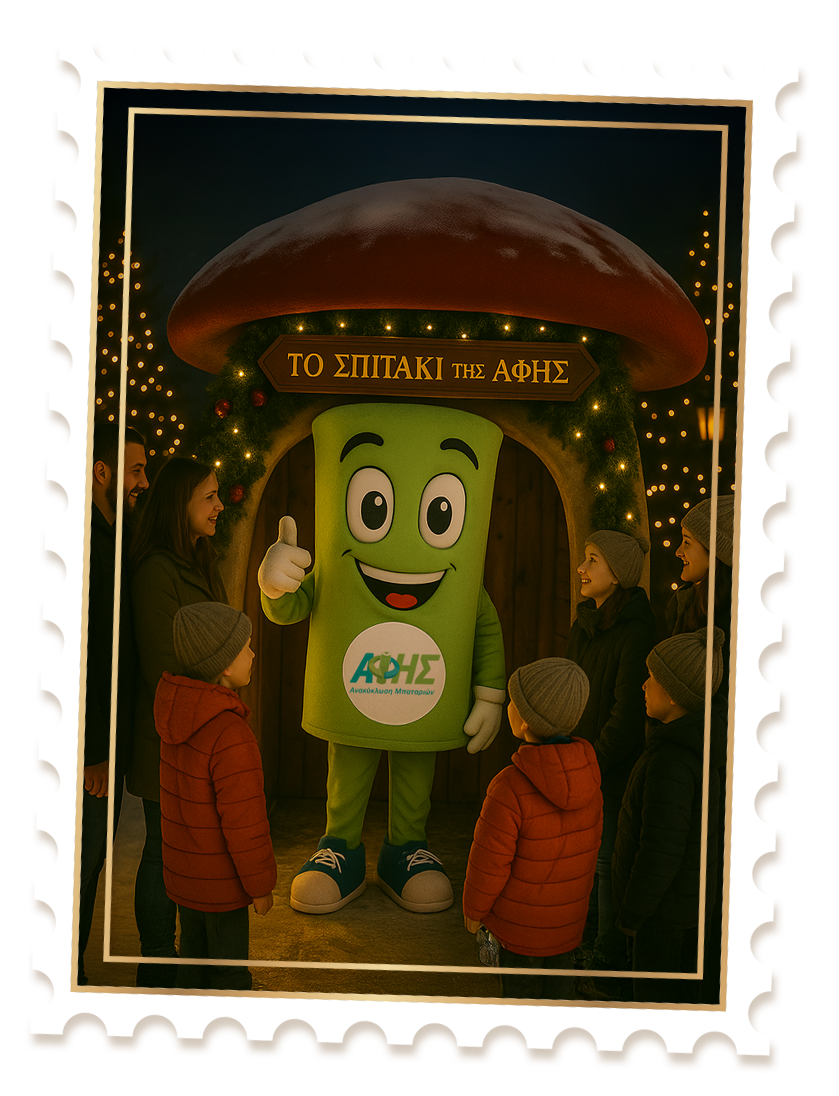 Τα παιδιά συγκεντρώνουν άδειες μπαταρίες και τις ρίχνουν στο σπιτάκι της ΑΦΗΣ. Μαθαίνουν ότι οι μπαταρίες δεν πετιούνται στα σκουπίδια, αλλά ανακυκλώνονται για να προστατεύουμε το περιβάλλον. Το σπιτάκι γίνεται σύμβολο φροντίδας και καθημερινής οικολογικής δράσης.