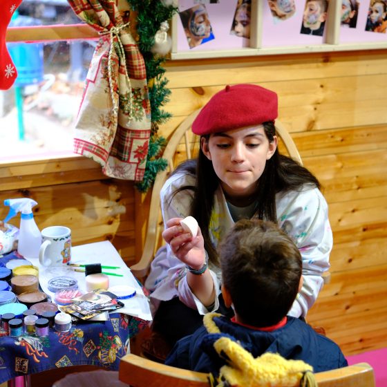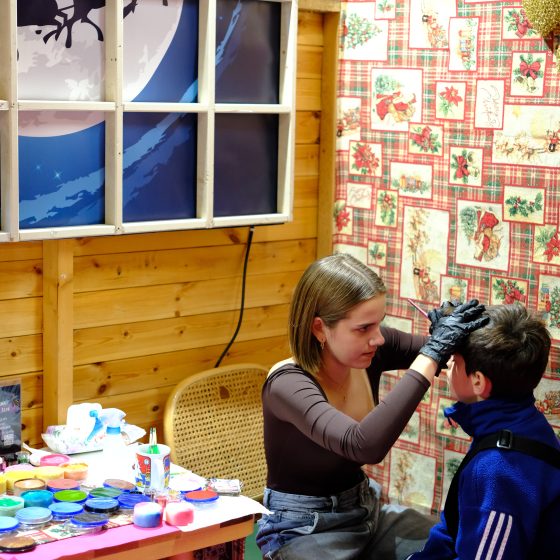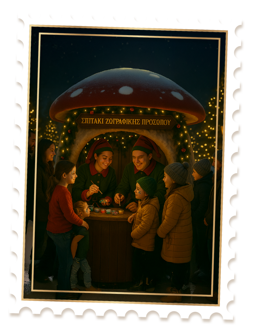 Τα χρώματα ζωντανεύουν και μεταμορφώνουν μικρούς και μεγάλους σε ξωτικά, νεράιδες, ταράνδους και ήρωες των γιορτών! Διάλεξε το σχέδιο που σου ταιριάζει, χαμογέλα, και άφησε τους καλλιτέχνες να σε μεταμορφώσουν σε ένα πλάσμα του παραμυθιού. Με αστραφτερά χρώματα, γκλίτερ και πινέλα γεμάτα φαντασία, κάθε πρόσωπο γίνεται ένας μικρός καμβάς χαράς και μαγείας. Μέσα στο Σπιτάκι Ζωγραφικής Προσώπου, η φαντασία δεν έχει όρια και η Ονειρούπολη γίνεται καθρέφτης των πιο φωτεινών ονείρων σου! Εδώ, κάθε χαμόγελο λάμπει λίγο περισσότερο — όπως τα φώτα που φωτίζουν τον ουρανό των Χριστουγέννων!