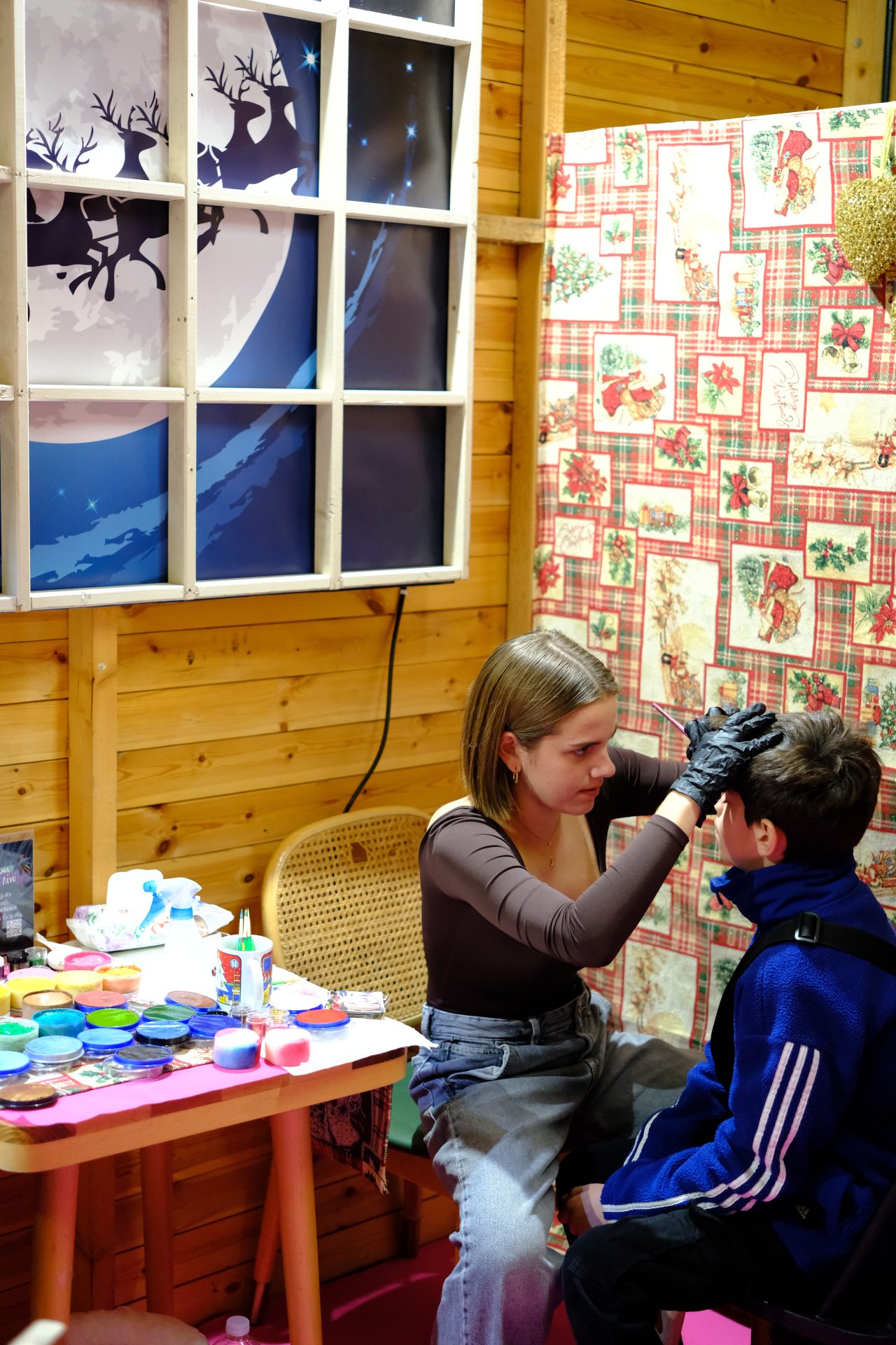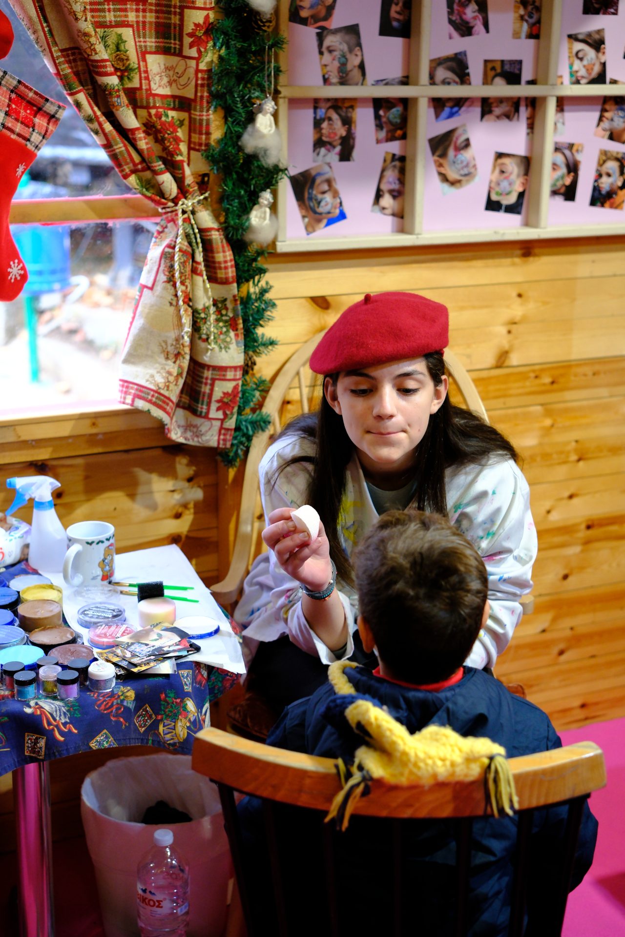 Τα χρώματα ζωντανεύουν και μεταμορφώνουν μικρούς και μεγάλους σε ξωτικά, νεράιδες, ταράνδους και ήρωες των γιορτών! Διάλεξε το σχέδιο που σου ταιριάζει, χαμογέλα, και άφησε τους καλλιτέχνες να σε μεταμορφώσουν σε ένα πλάσμα του παραμυθιού. Με αστραφτερά χρώματα, γκλίτερ και πινέλα γεμάτα φαντασία, κάθε πρόσωπο γίνεται ένας μικρός καμβάς χαράς και μαγείας. Μέσα στο Σπιτάκι Ζωγραφικής Προσώπου, η φαντασία δεν έχει όρια και η Ονειρούπολη γίνεται καθρέφτης των πιο φωτεινών ονείρων σου! Εδώ, κάθε χαμόγελο λάμπει λίγο περισσότερο — όπως τα φώτα που φωτίζουν τον ουρανό των Χριστουγέννων!